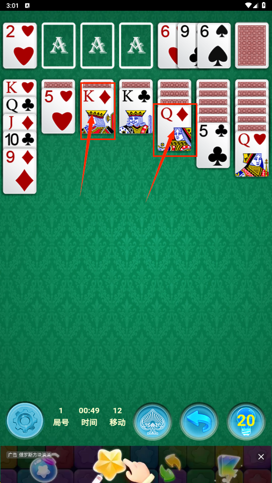 3、规划接龙顺序:观察牌面布局把握纸牌顺序制定合理的接龙方案。