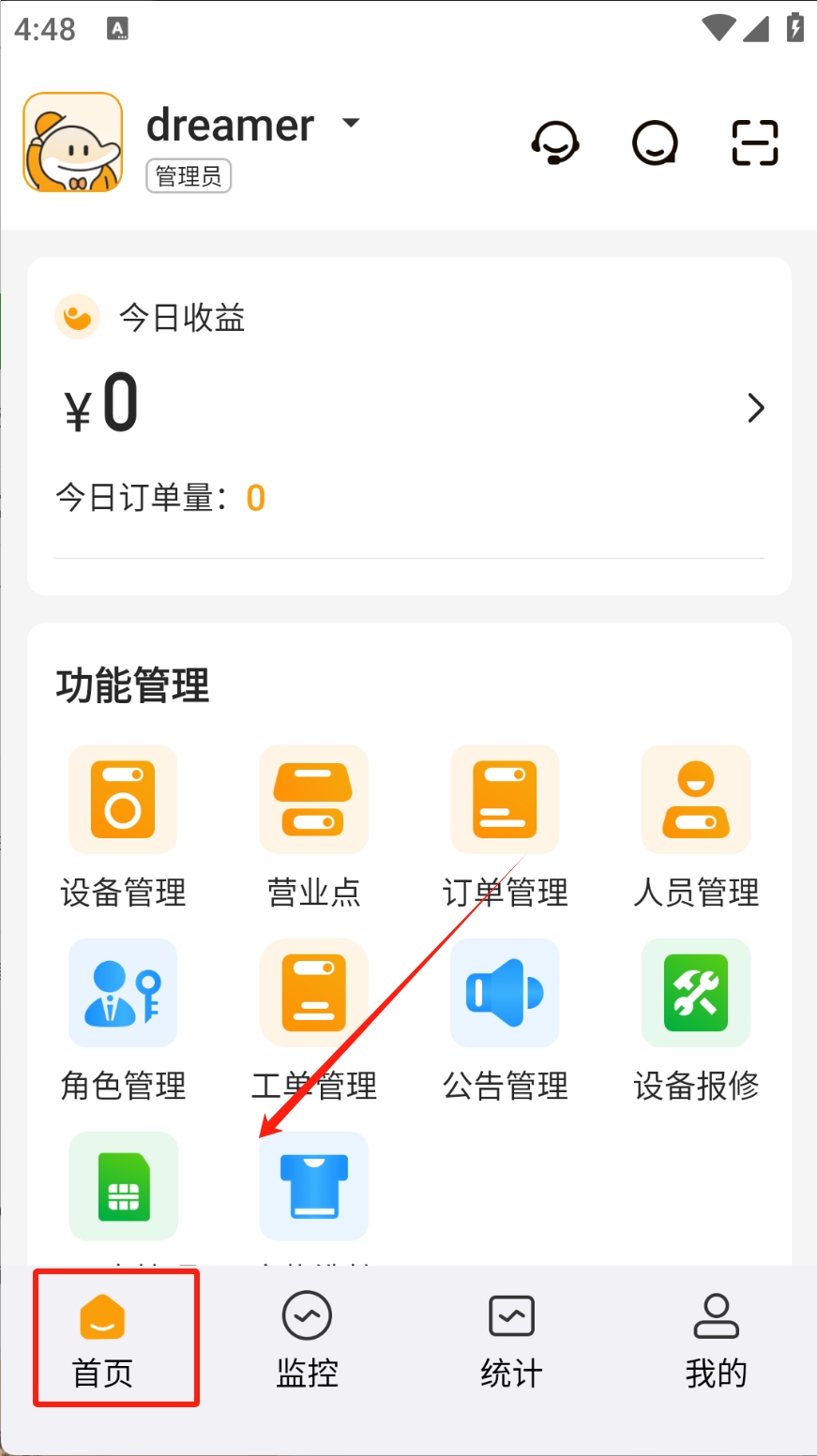 1、点击“首页”图标,进入功能管理页面。