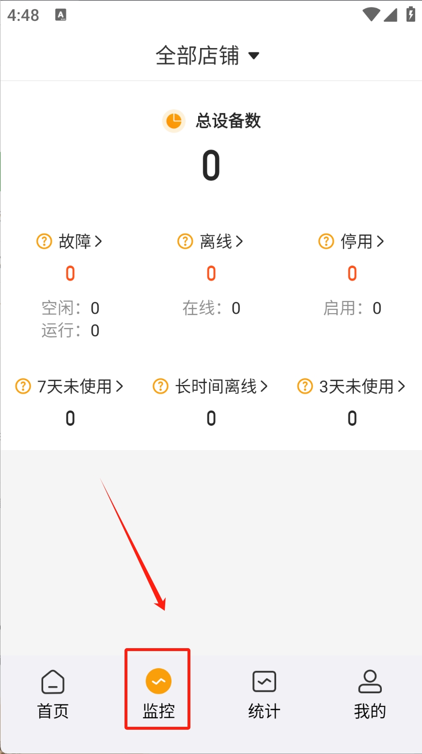 2、点击“监控”图标,查看设备状态和信息。