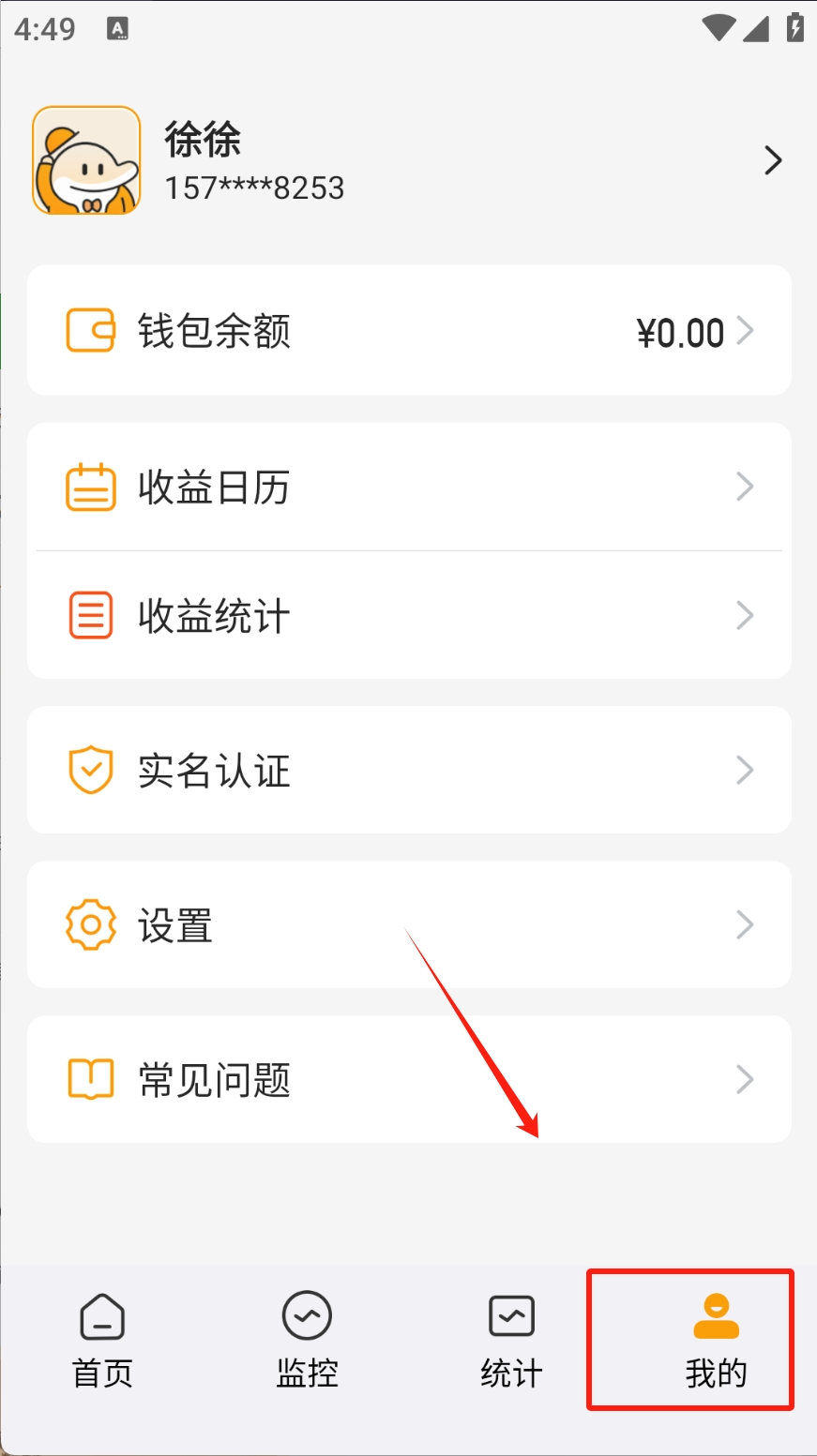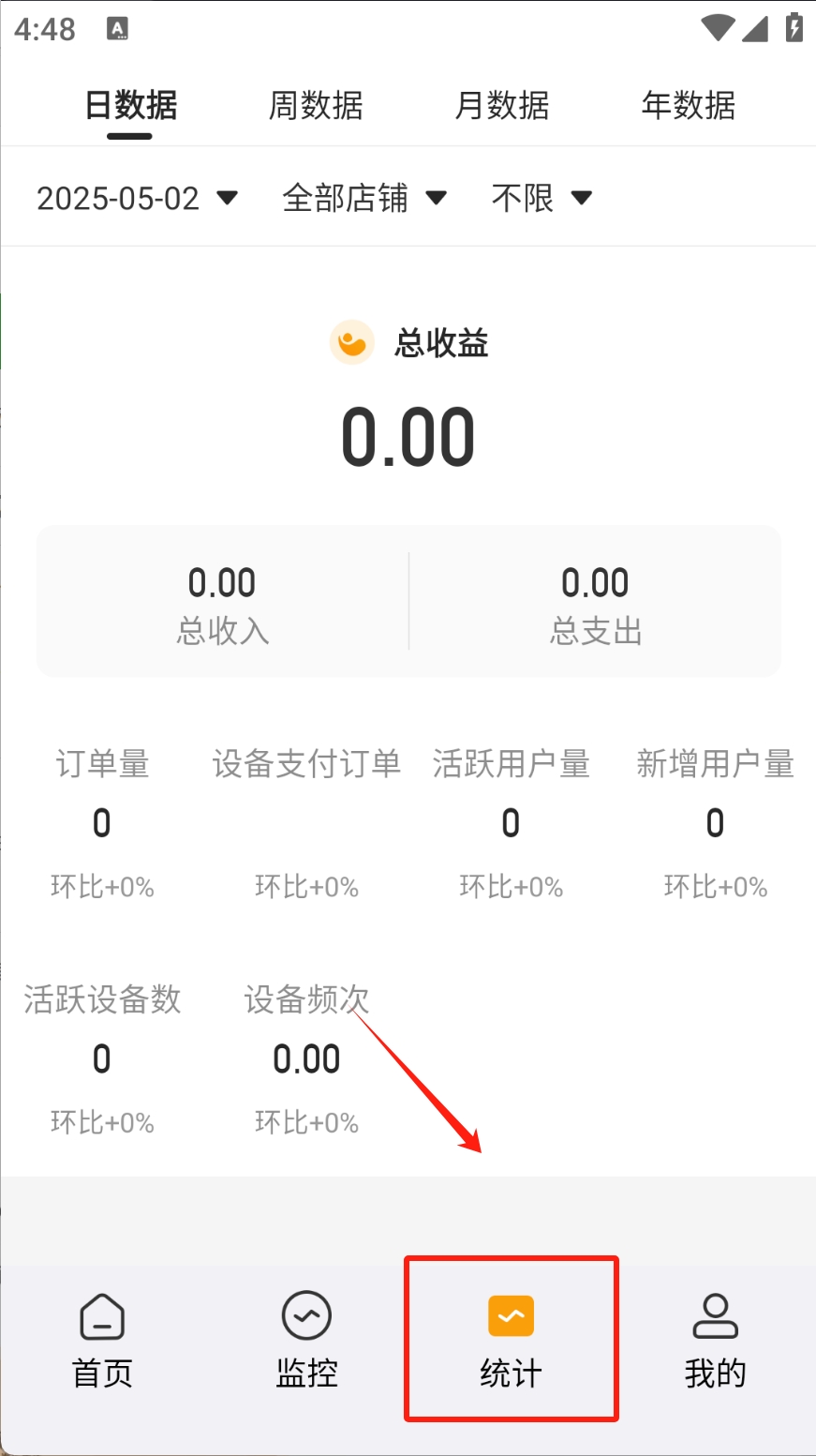 3、点击“统计”图标,查看收益和订单统计数据。
