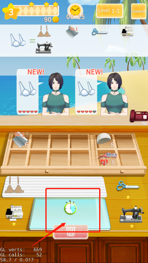 2、顾客需求与泳装推荐:玩家需要根据顾客需求推荐泳装,保证基本销量,提高发展效率。