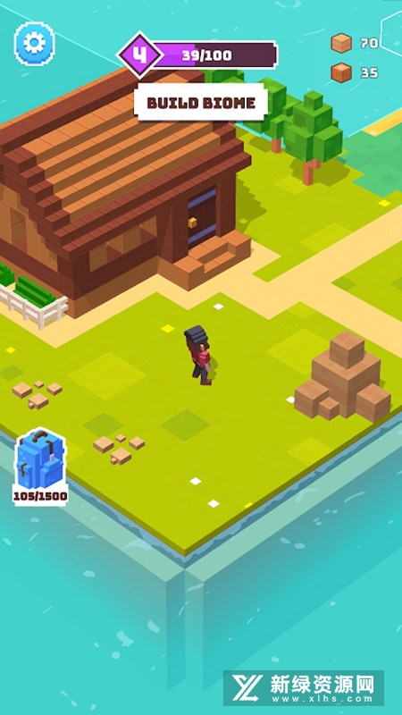 2.所以现在你可以在这个有趣的、基于积木的制作游戏中,从海洋中间的一小块土地开始。