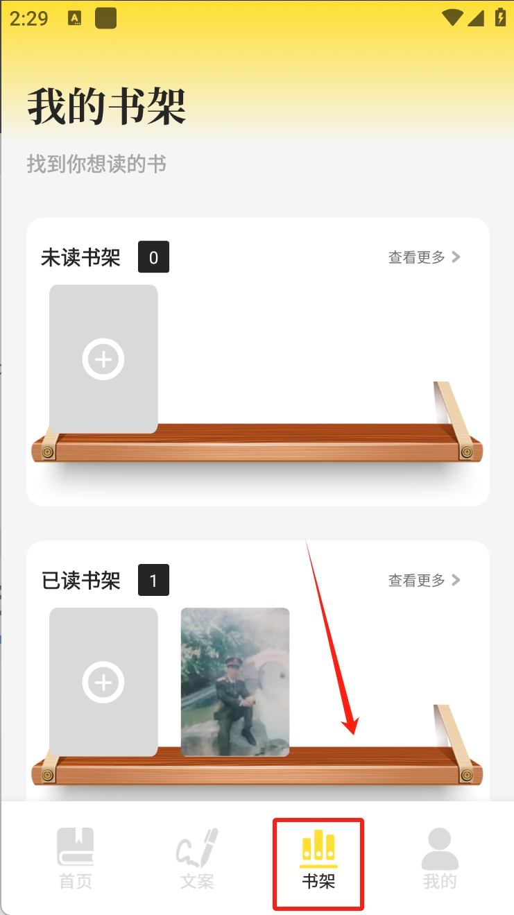 3、通过“书架”管理已读和未读书籍。