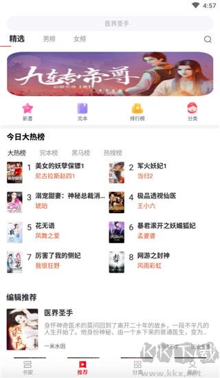 1、下载安装必读小说app,进入首页即可查看当前热门小说;