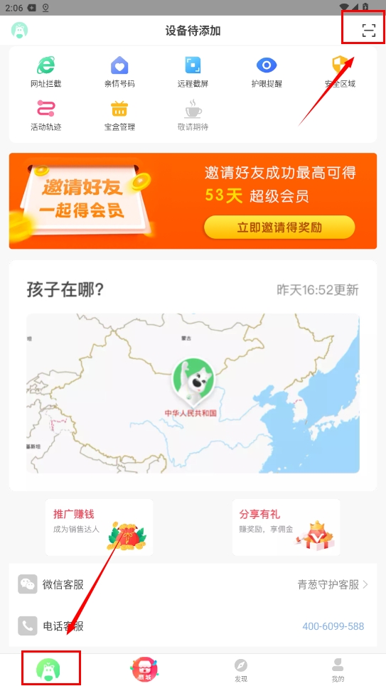 3、根据提示下载安装儿童客户端,完成安装后即可通过扫码绑定设备开始使用。