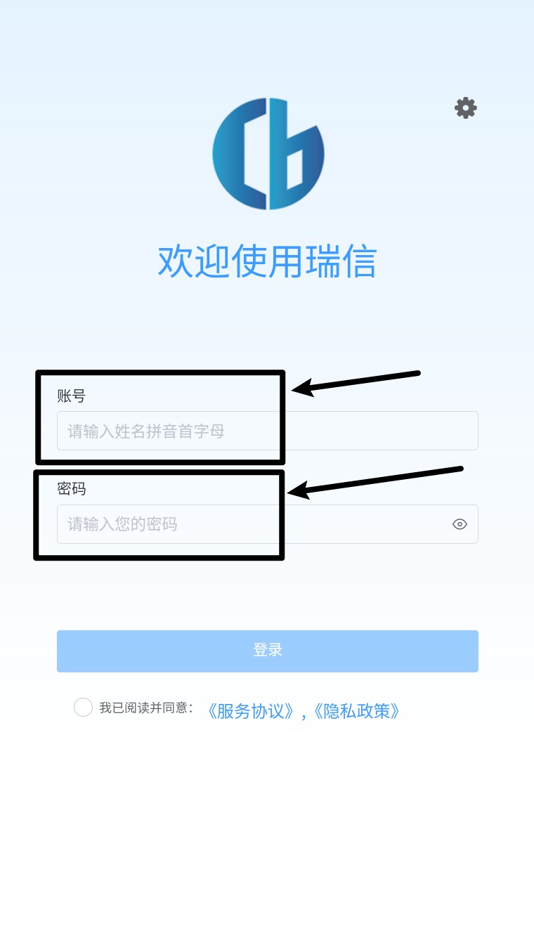1. 启动 App 后进入登录页,输入账号(拼音首字母)与密码,准备登录系统。