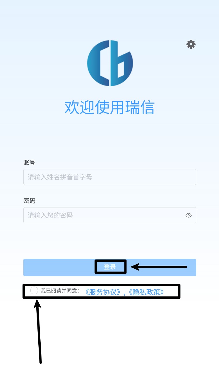 2. 勾选下方“我已阅读并同意”服务协议与隐私政策,点击蓝色“登录”按钮。