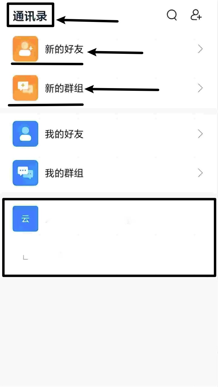 3. 登录成功后点击通讯录模块,可查看“新的好友”、“新的群组”等内容管理。