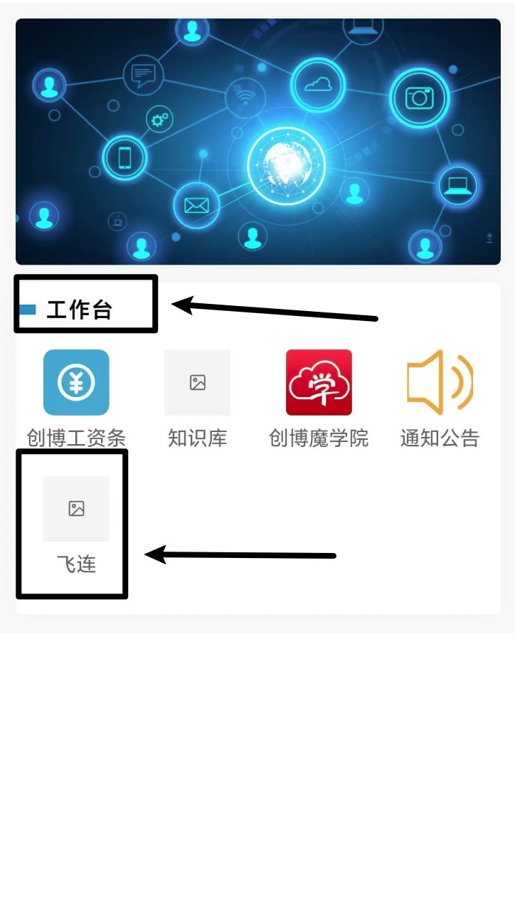 5. 在“工作台”中点击“飞连”或“知识库”,即可快速进入对应系统协作页面。