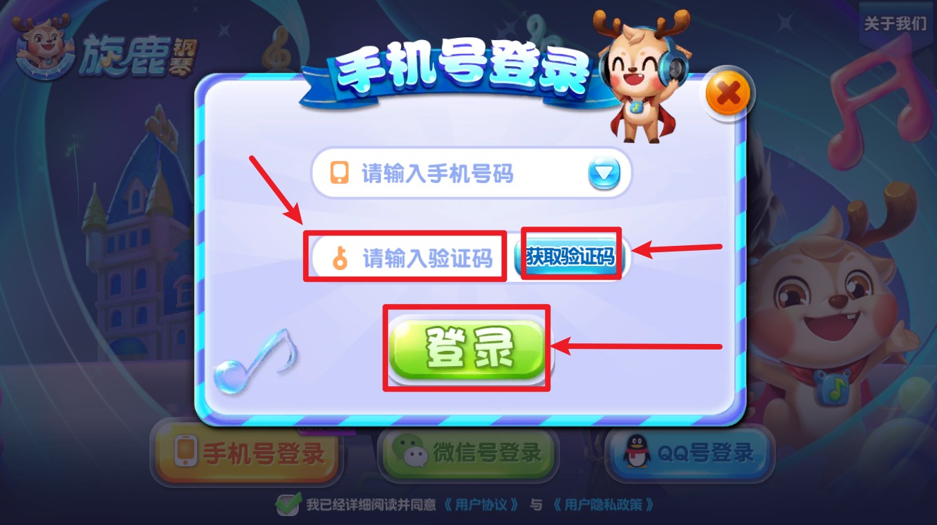 2. 依序填写你的手机号与验证码,确认无误后点击绿色“登录”按钮进入主页。