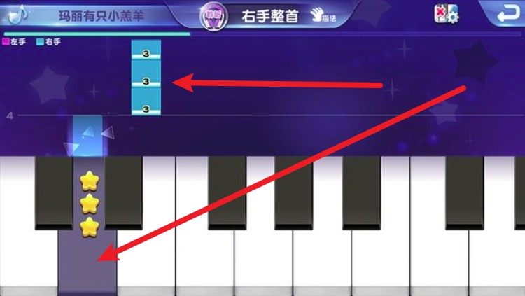4. 按照提示选择教学章节,点击进入后就会显示钢琴键与跟弹节奏画面。