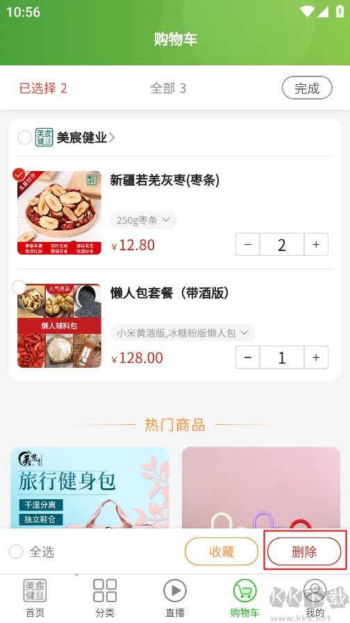 2、选择自己不想要的商品,然后点击右下角的删除;