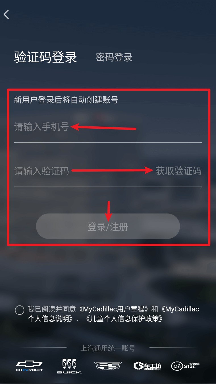 1. 打开 App 后选择“验证码登录”,输入手机号和验证码后点击“登录/注册”即可成功进入。