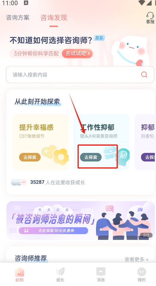 2、选择咨询师:根据个人需求浏览咨询师资料,查看擅长领域和用户评价,匹配最适合的专业人士 。