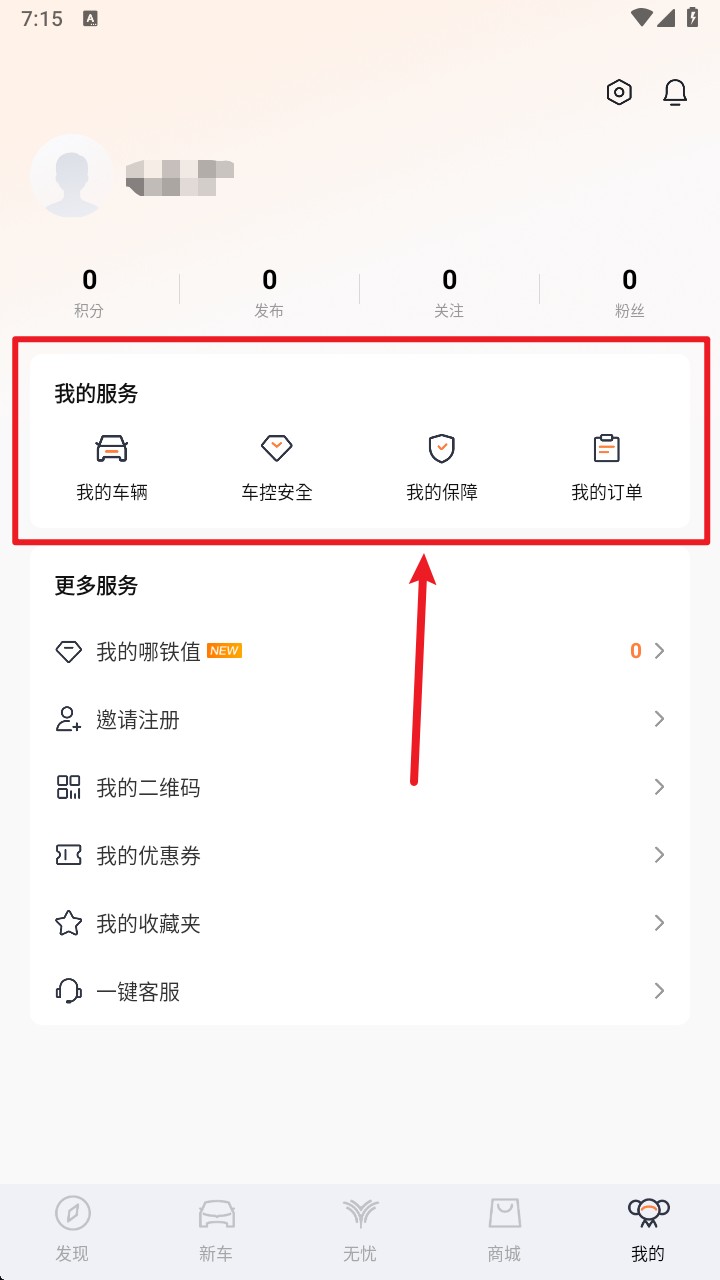 3. 登录成功后返回“我的”页面,可依序查看我的车辆、车控安全、我的保障与订单等服务入口。