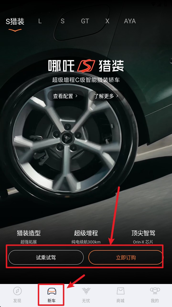 4. 点击底部“新车”选项进入车型展示页,挑选目标车款后可发起试驾申请或立即下订流程。