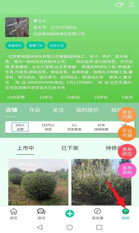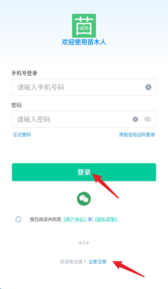 1、打开苗木人APP,使用手机号注册并登录账号,开始使用平台功能。