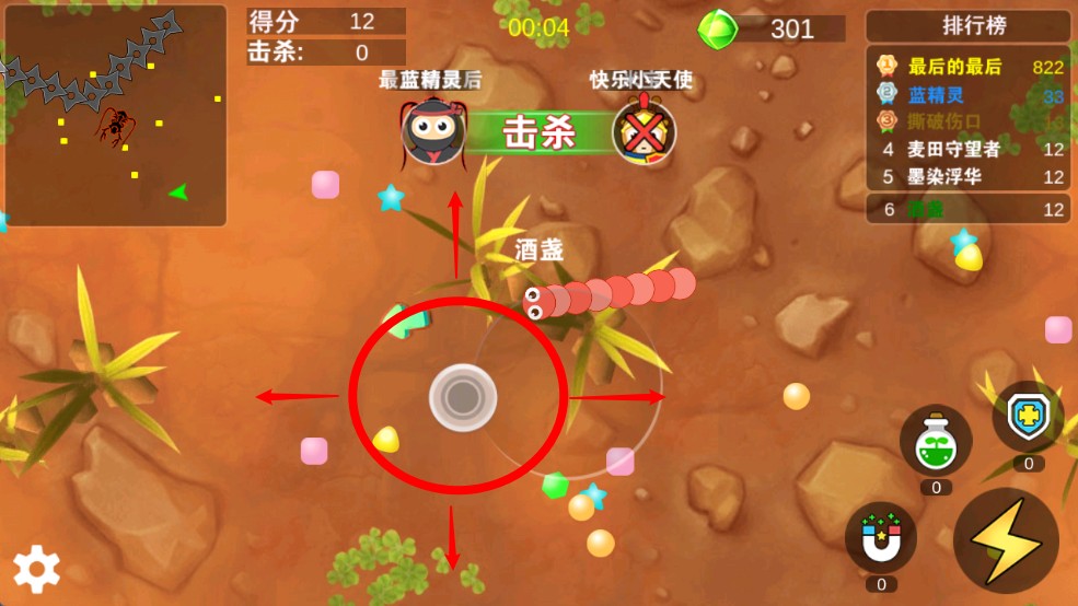 2. 吞食技巧:迅速吃掉地图食物和敌人残骸,使蛇身迅速变长,增强战斗力。