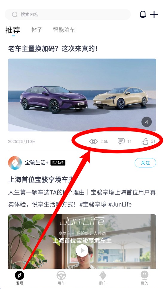 1、在“发现”页面可浏览推荐内容,也可以互动如评论或点赞。