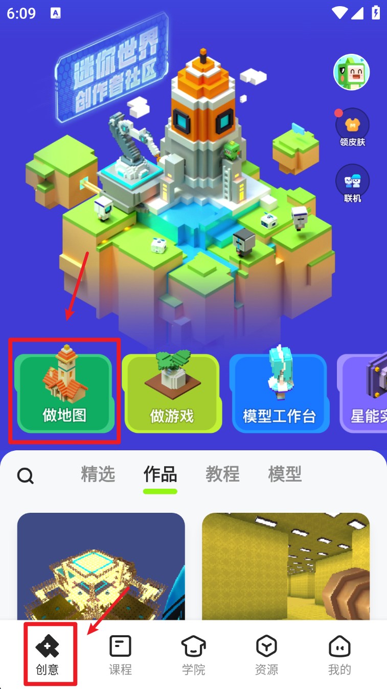 1. 打开 App 进入首页后,点击底部“创意”标签页,再选择“做地图”进入创作模式选单。