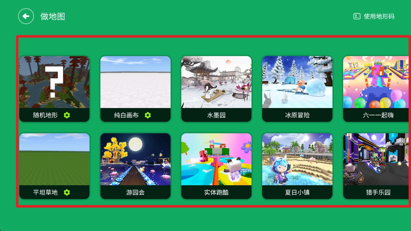 2. 在地图模板界面中挑选你喜欢的风格,如“水墨园”或“平坦草地”等,点击即可载入编辑。