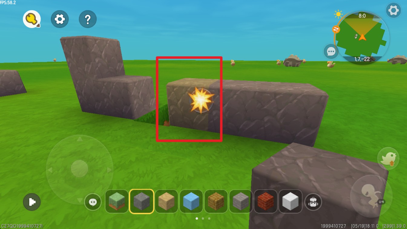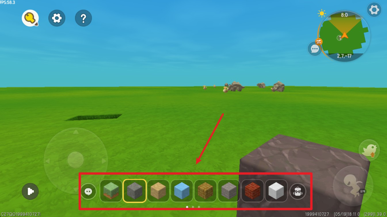 4. 下方方块栏可滑动选择素材,点击右方按钮即可放置或挖除当前选中的方块。