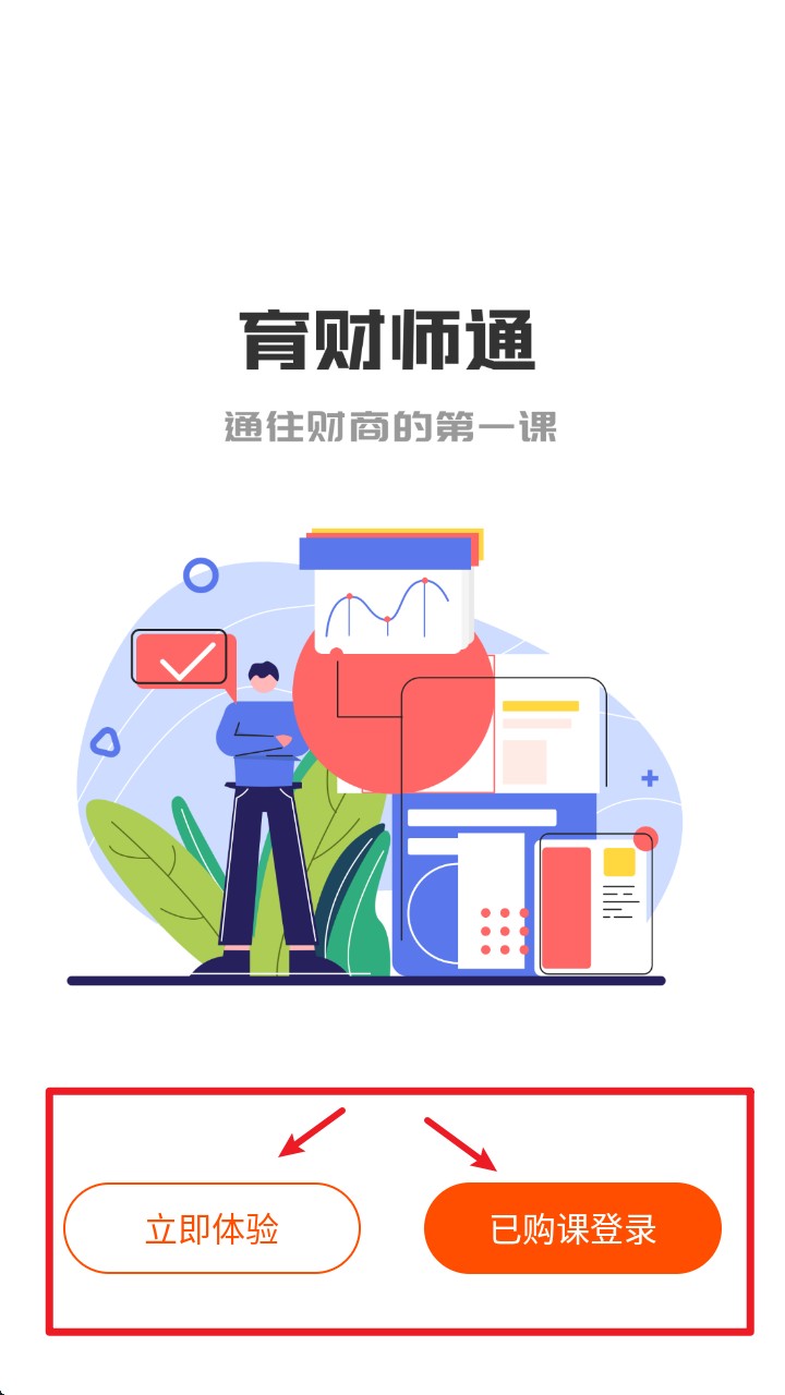 1. 进入 App 后点击首页的“立即体验”或“已购课登录”,选择对应身份进入主页。