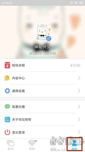 1、打开应用进入首页,可向师兄发起提问或为师弟解答问题,通过互动获取酬金。