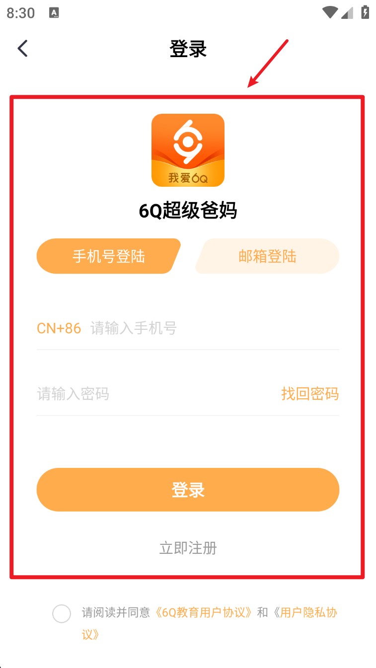 1. 打开 App 并选择手机号或邮箱方式登录,输入信息后点击“登录”即可进入首页。