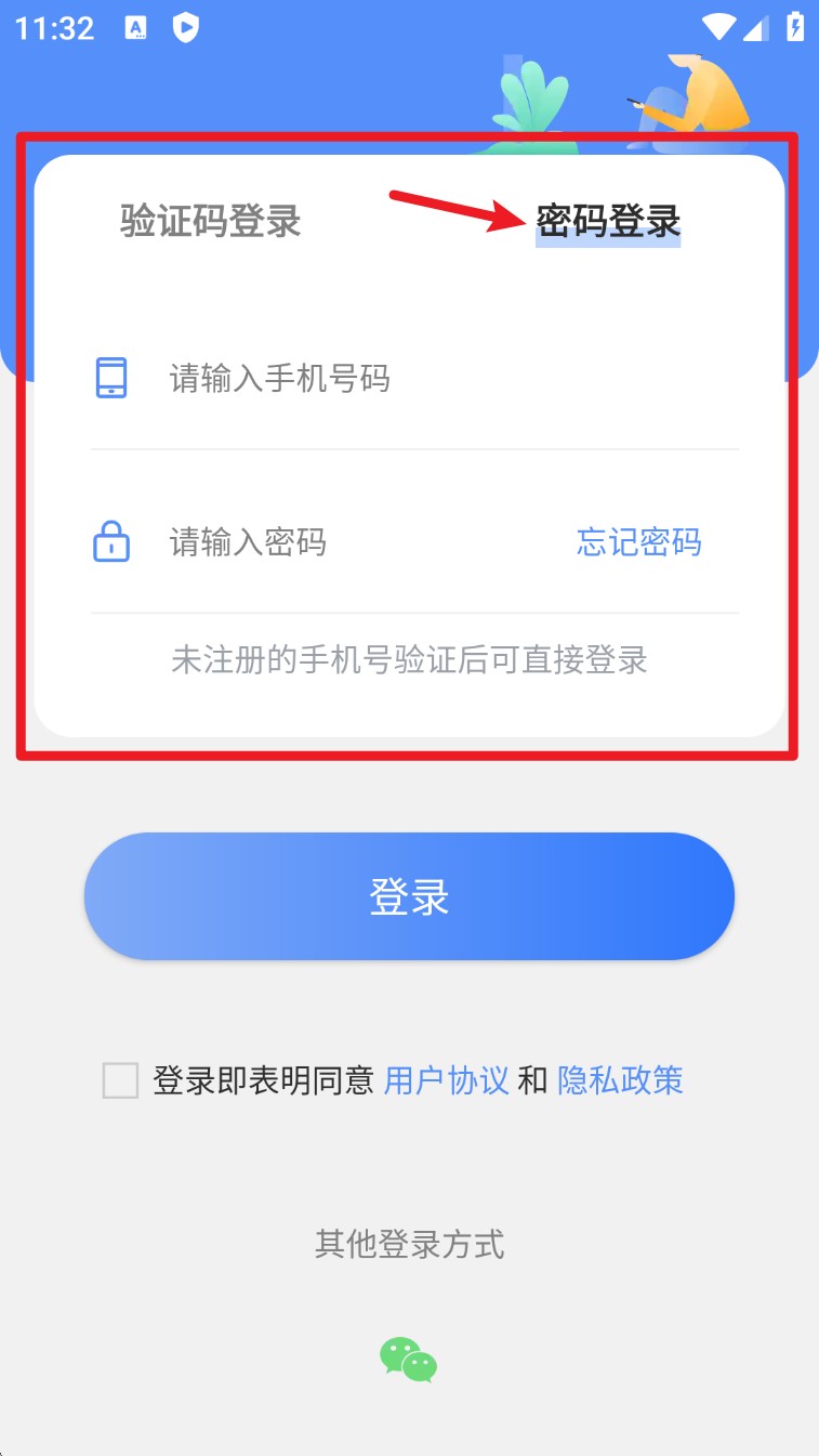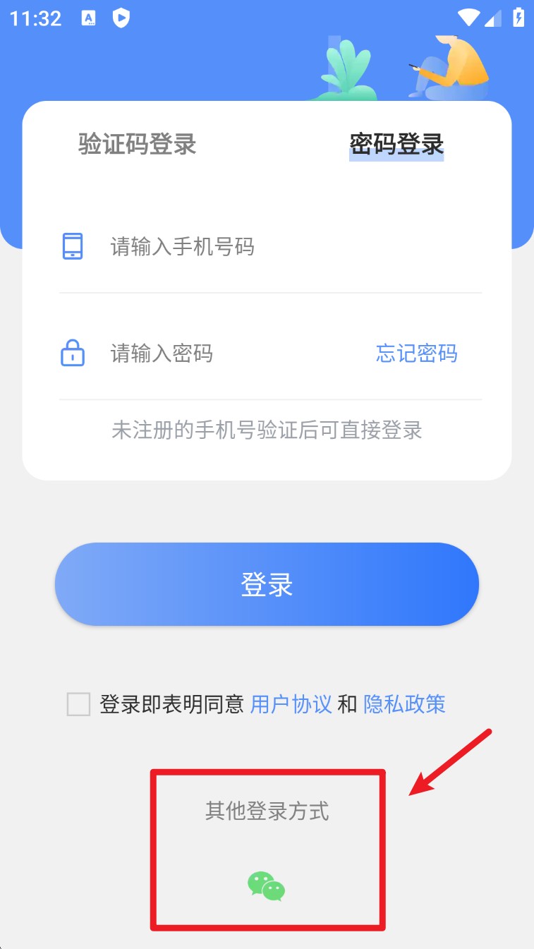 3. 若不想输入手机号,也可以点击下方“其他登录方式”,选择微信一键登录绑定账号。