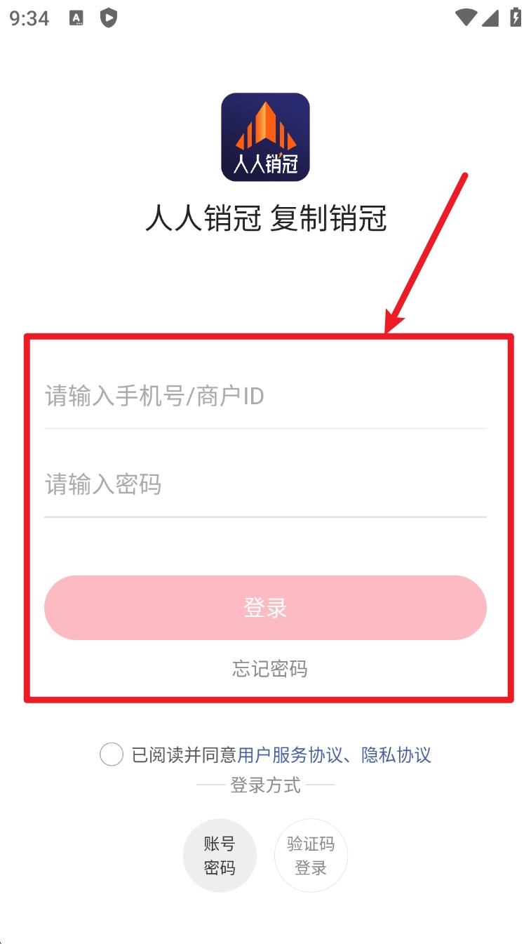 1. 打开 App 后可选择“账号密码”或“验证码登录”方式,输入手机号与密码或验证码完成登录。