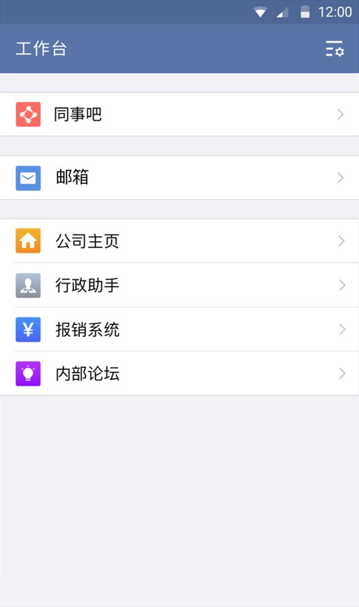 4. 点击“工作台”可访问各类办公入口,如邮箱、公司主页、报销系统等功能模块。