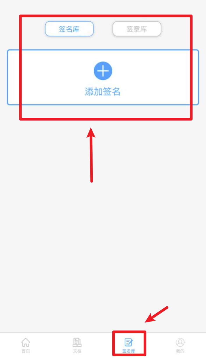 4. 进入“签名库”页面,点击“添加签名”可先手写录入个性签名,方便后续反复使用。