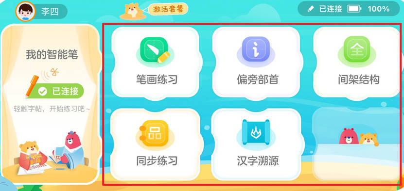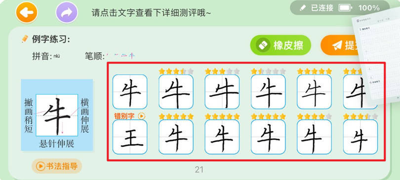 2、书写同步纸本练习,系统智能评分。