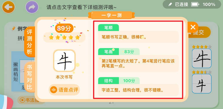 3、每写一字即评测,细节分析很清晰。