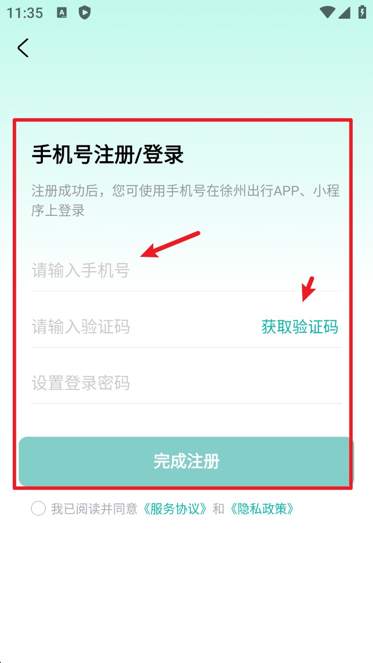 2. 若是首次注册用户,点击“注册账号”并填写手机号、验证码、登录密码后完成注册流程。