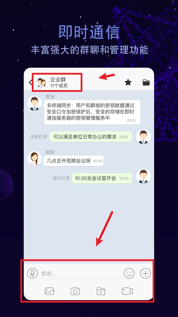 2. 强大的即时消息功能,支持即时收发信息,还可以创建多人聊天。