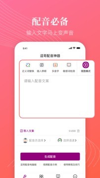 逗哥配音神器免费下载无广告v6.4.0是一款专业的配音软件,可以帮助用户实现自己想要的独特配音效果。该软件具有丰富的功能和亮点,可以让用户轻松完成各种配音任务。此外,软件有很多优点,使用起来也很简单。使用时,只需轻点几下,即可完成理想的配音效果。感兴趣的小伙伴赶快下载最新的软件版本吧。