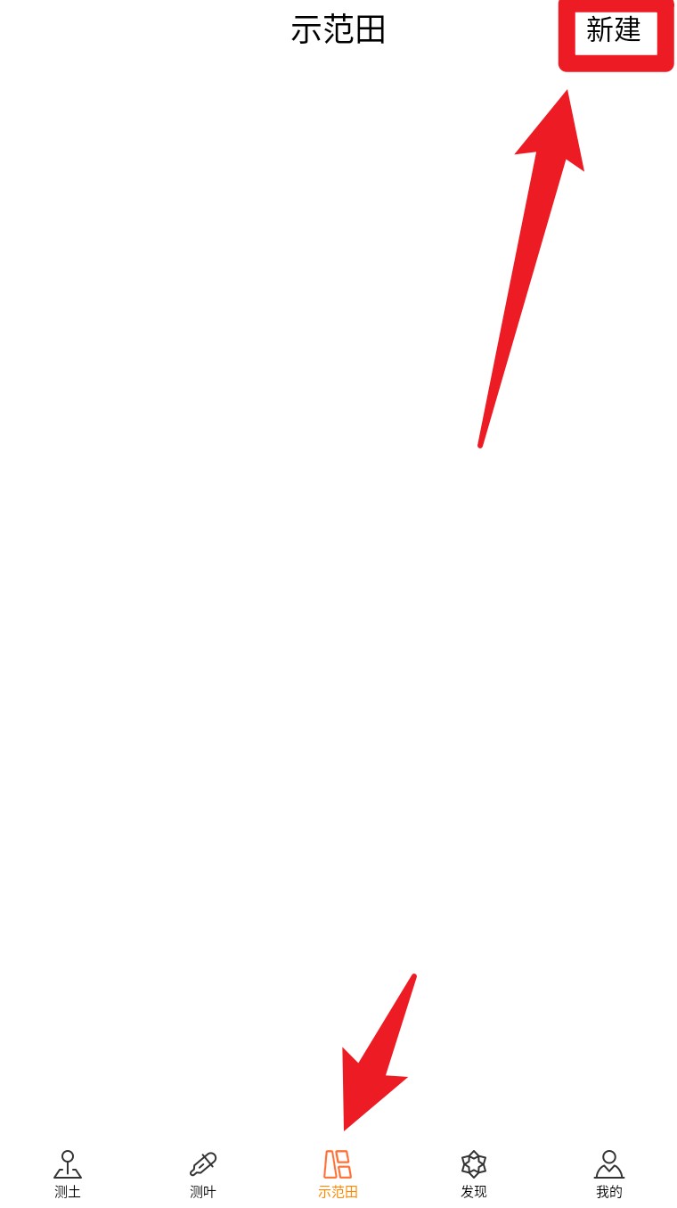 4. 若需创建自己的试验田,点击底部“示范田”栏目,再点击右上角“新建”按钮。