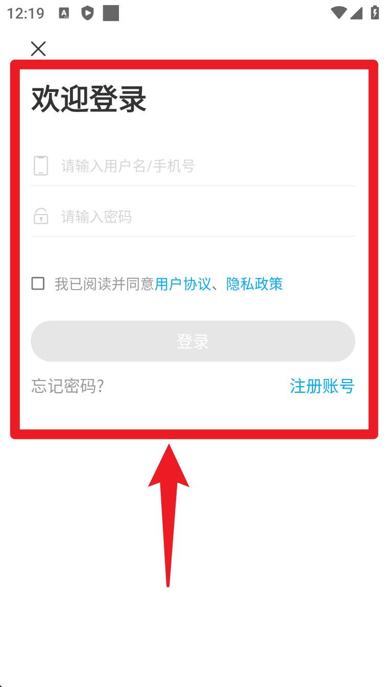 2. 注册完成后返回登录页面,输入账号密码并勾选用户协议,点击「登录」进入主界面。