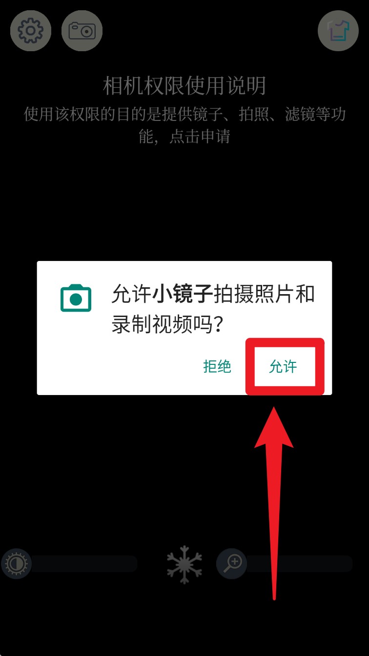 1. 初次打开 App 时,系统会弹出相机权限请求,点击“允许”即可开启镜子与拍照功能。