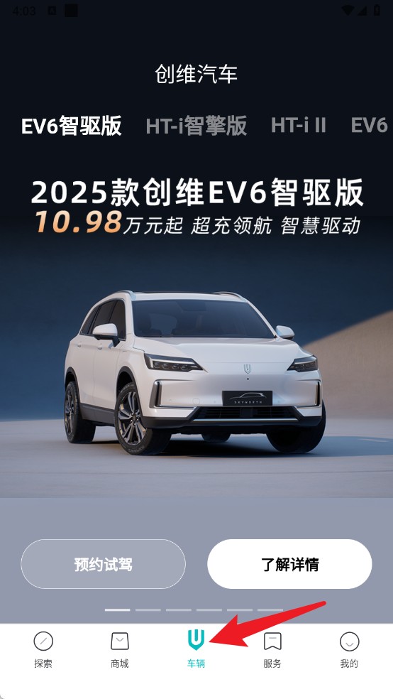 3、点击“车辆”页面进入车型专区,查看不同车型详细配置。