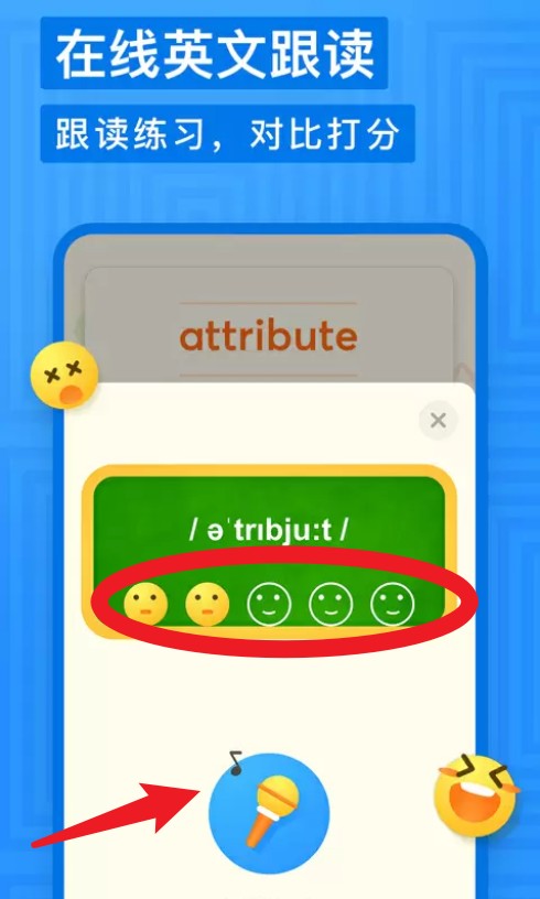 2、进行英文跟读练习,系统自动评分,纠正发音更为精准。