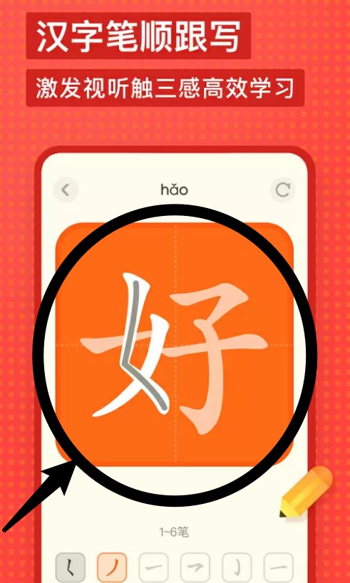 3、按照笔顺轨迹书写汉字,激发视听触觉三感同步高效学习。