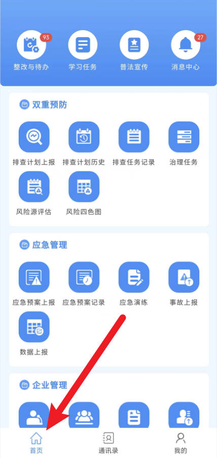 1、点击底部导航栏中的“首页”进入主功能页面。