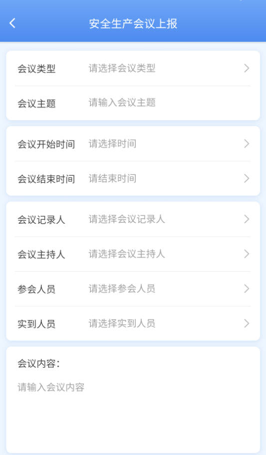 4、在“安全生产会议上报”页面填写会议信息并提交。