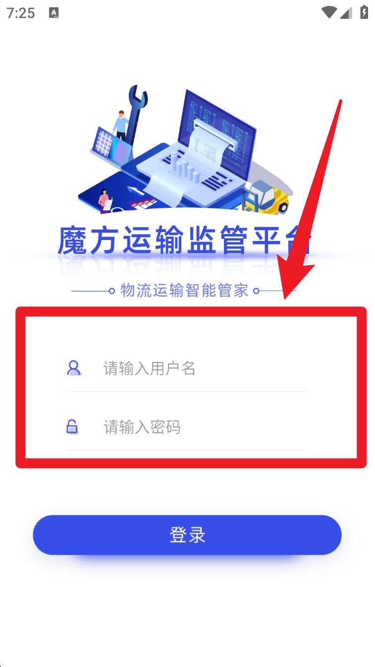 1. 启动 App 后输入用户名与密码,点击「登录」进入魔方运输监管平台。