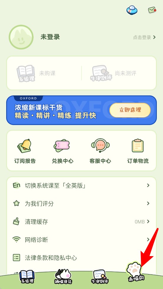 5、点击底部“本喵的”进入个人中心,可管理账户和查看学习进度。