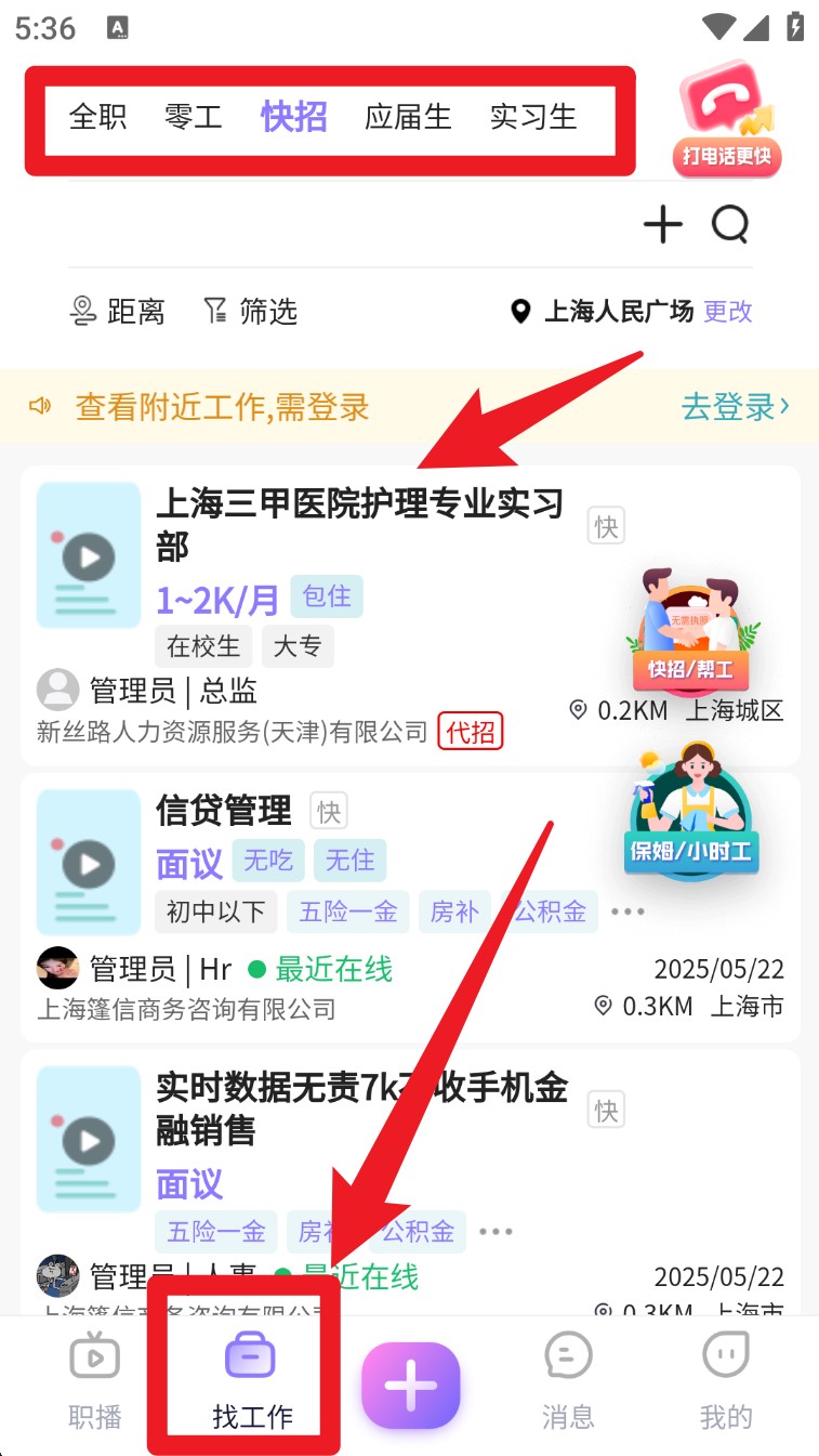 2. 搜品牌企业找体面地工作上,与HR/商家/招聘者/老板直聊,多企业招聘招聘面试合作,录用、电子签约。