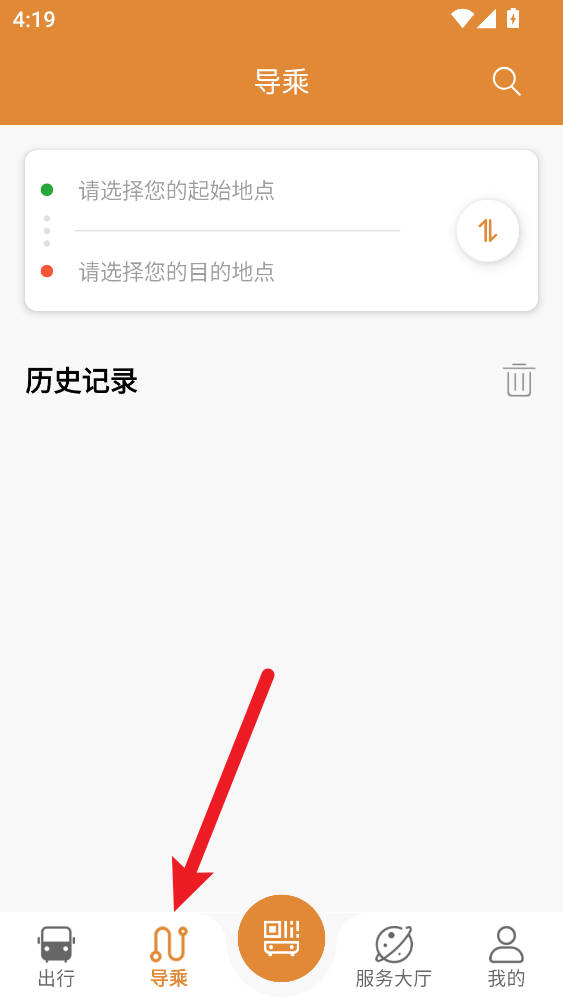 2、点击“导乘”输入起点终点,获取换乘线路方案。
